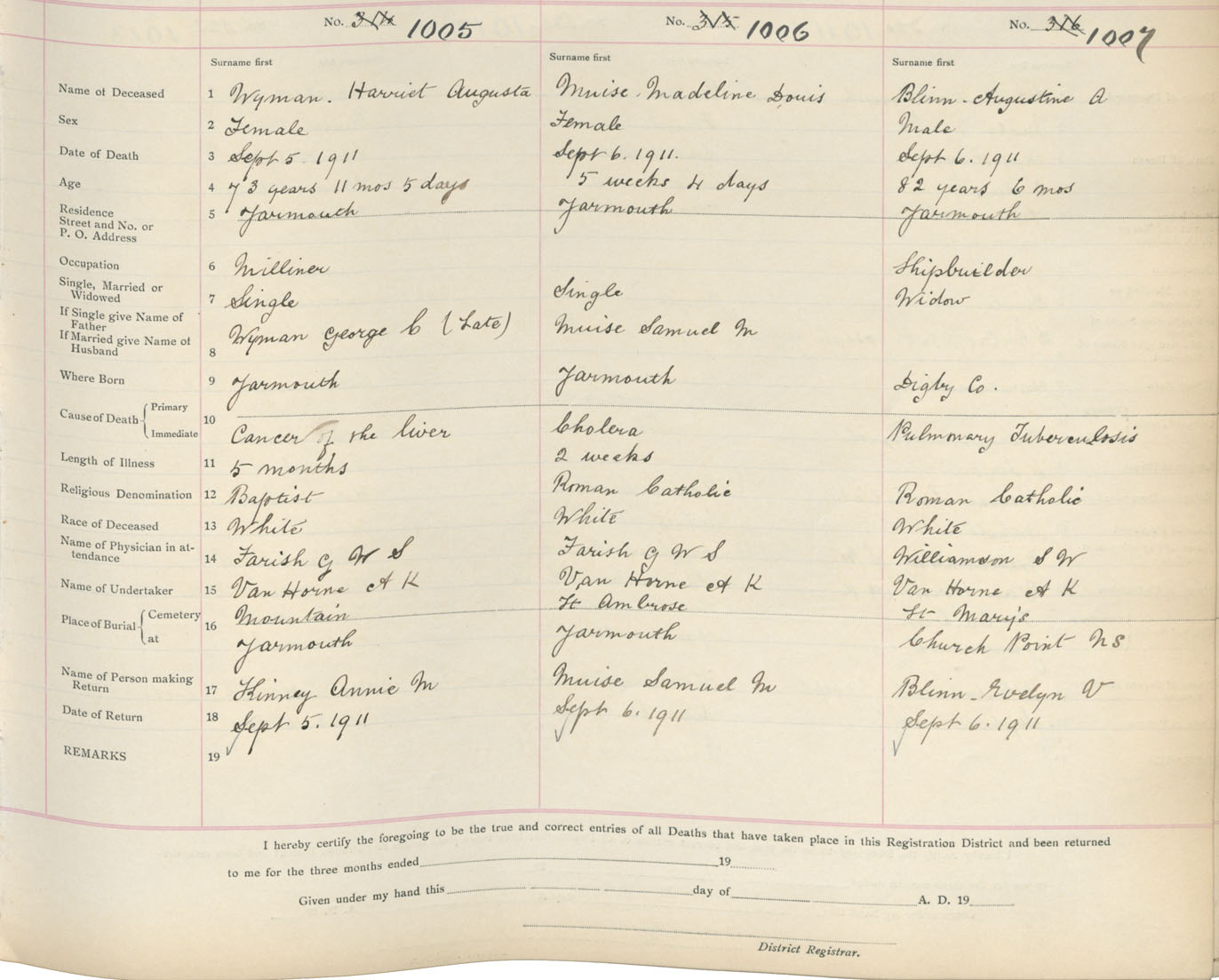 Death Registration: Year: 1911 book: 19 page: 172 number: 1007