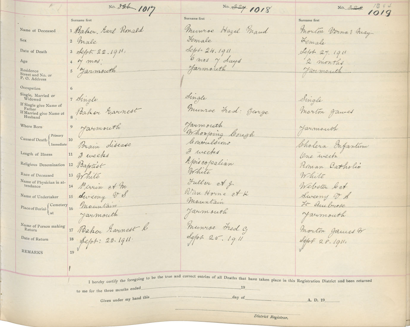 Death Registration: Year: 1911 book: 19 page: 174 number: 1019
