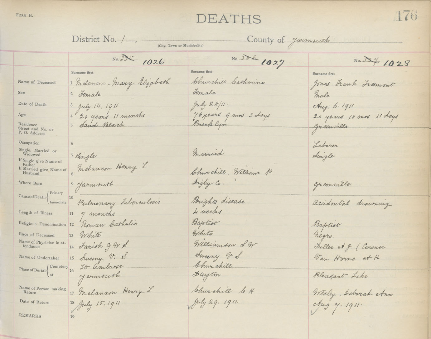 Death Registration: Year: 1911 book: 19 page: 176 number: 1028
