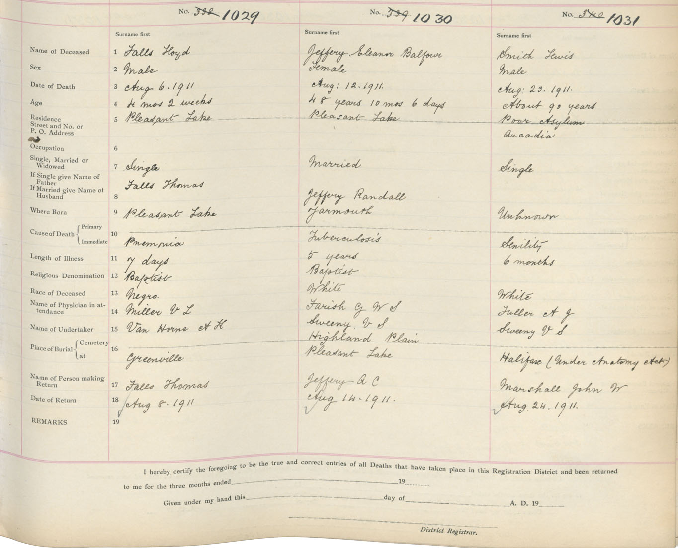 Death Registration: Year: 1911 book: 19 page: 176 number: 1031