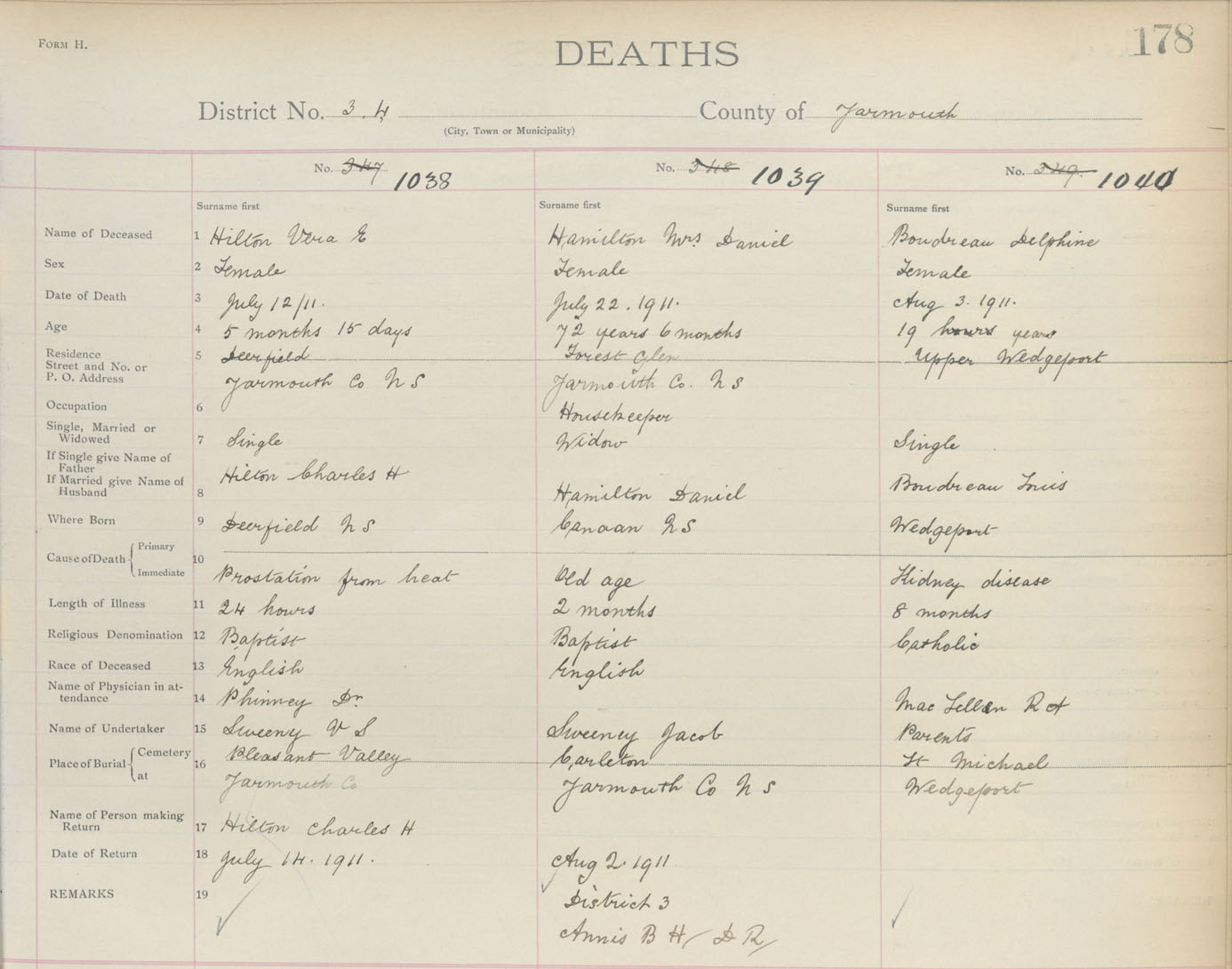 Death Registration: Year: 1911 book: 19 page: 178 number: 1040