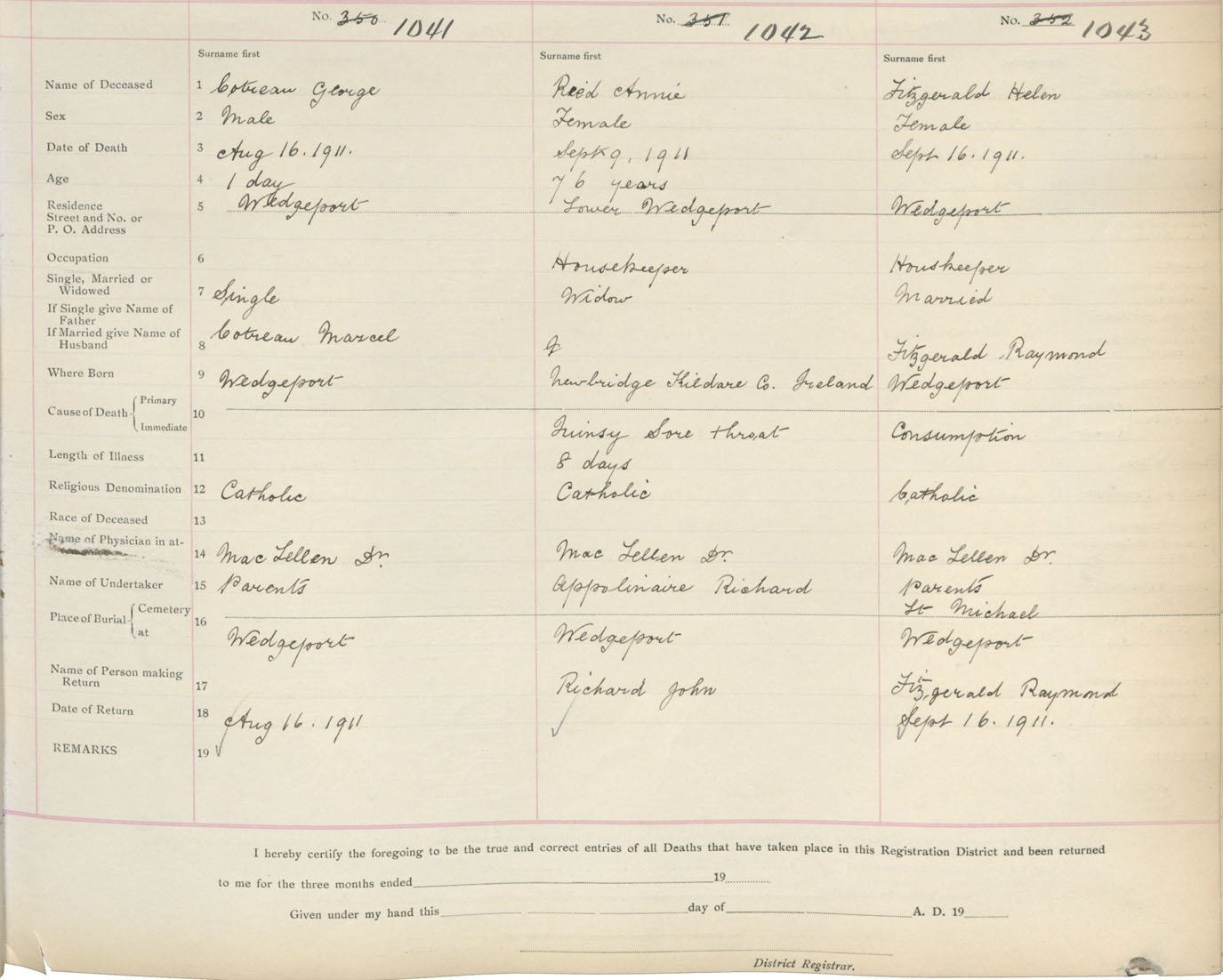 Death Registration: Year: 1911 book: 19 page: 178 number: 1043