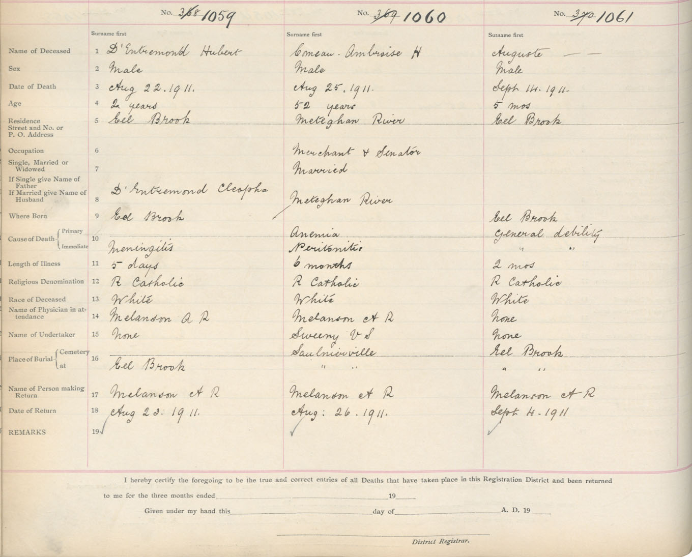 Death Registration: Year: 1911 book: 19 page: 181 number: 1061
