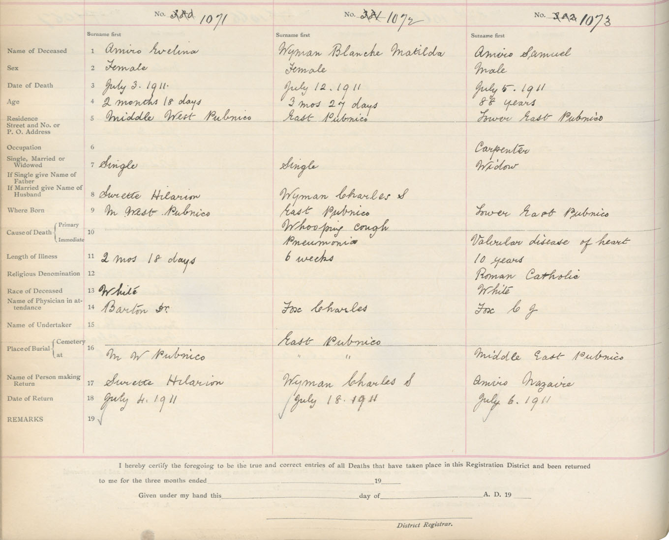 Death Registration: Year: 1911 book: 19 page: 183 number: 1073