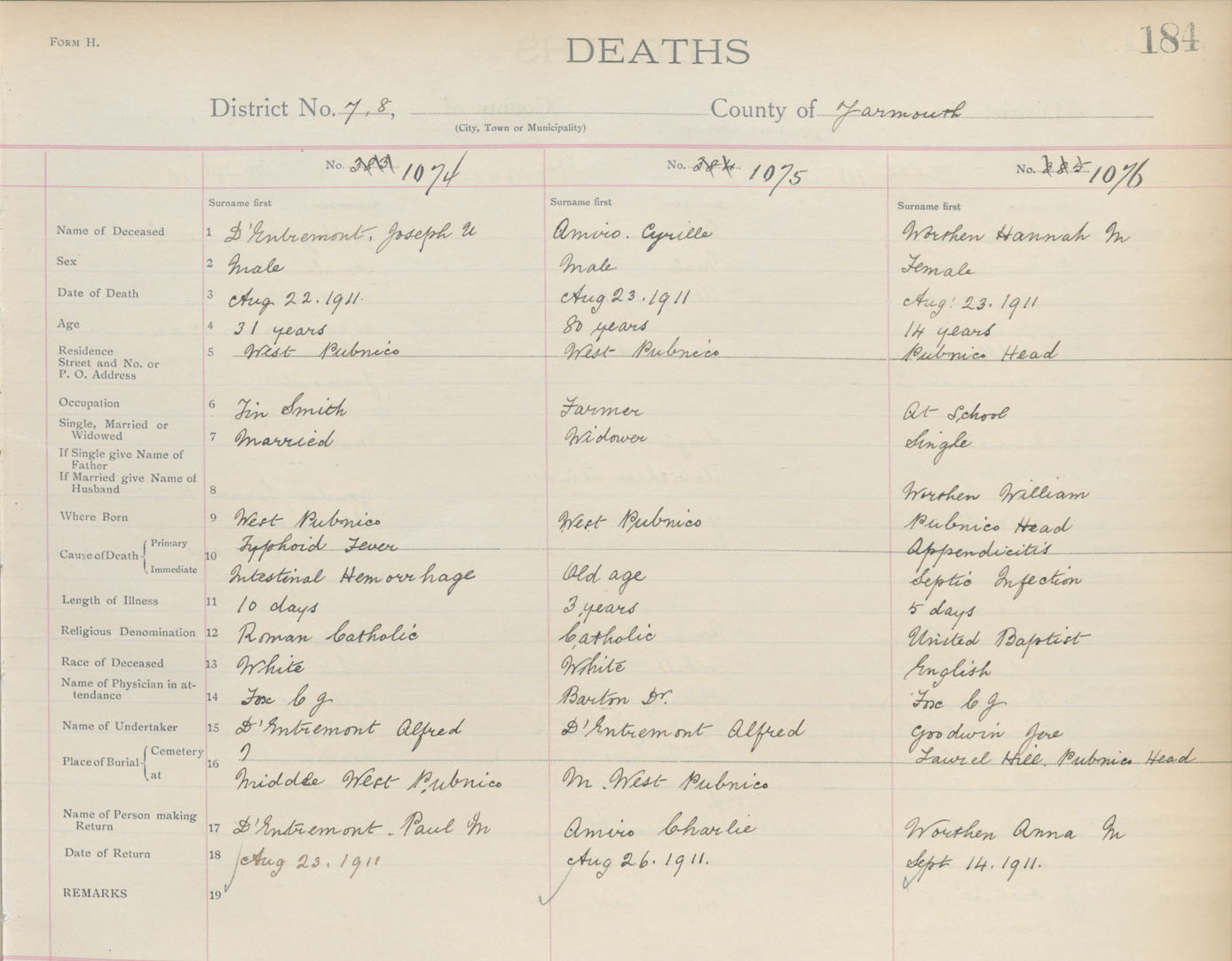 Death Registration: Year: 1911 book: 19 page: 184 number: 1076
