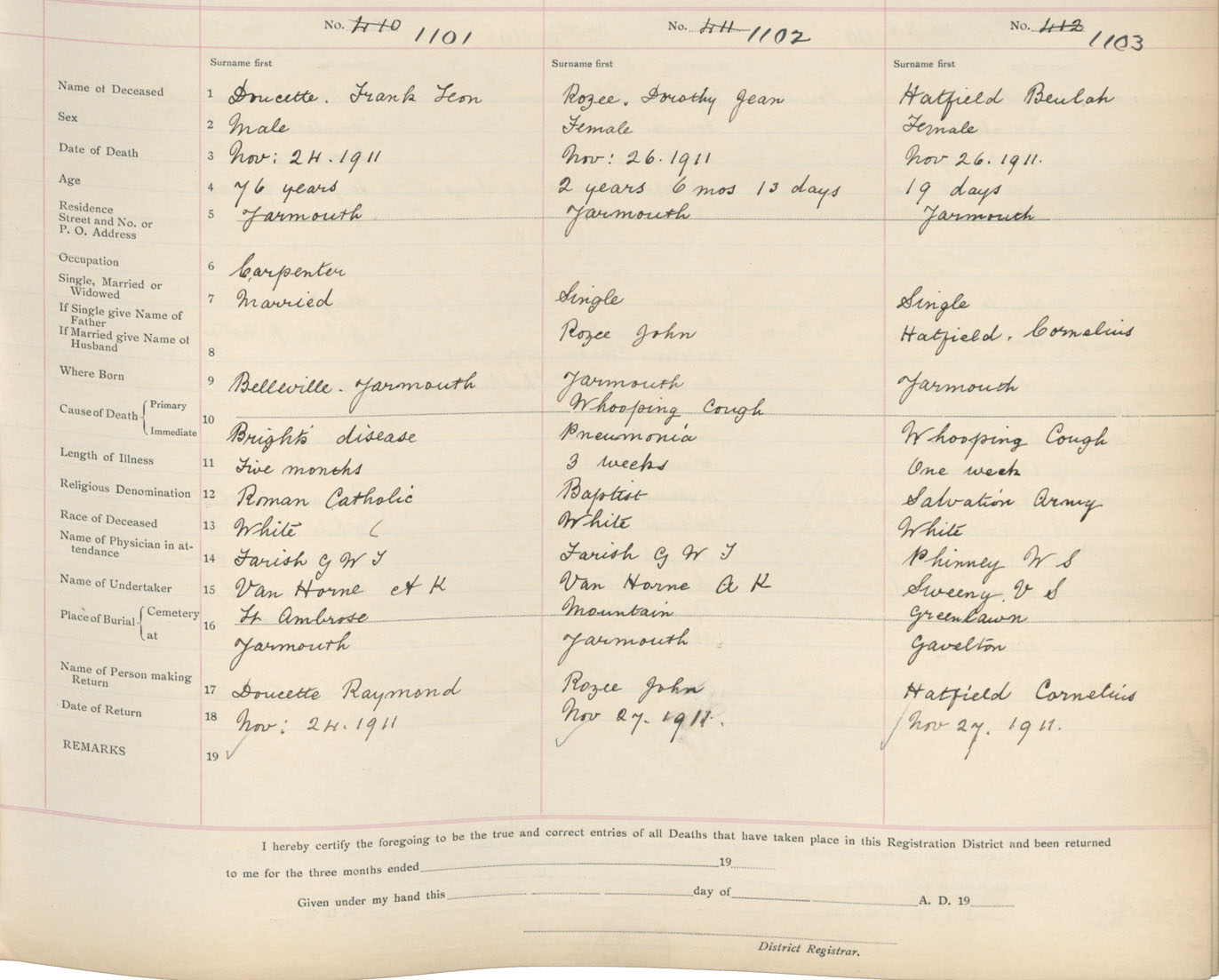Death Registration: Year: 1911 book: 19 page: 188 number: 1103