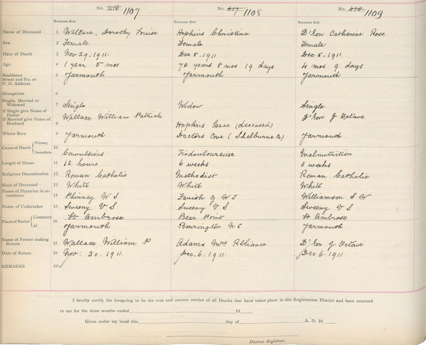 Death Registration: Year: 1911 book: 19 page: 189 number: 1109