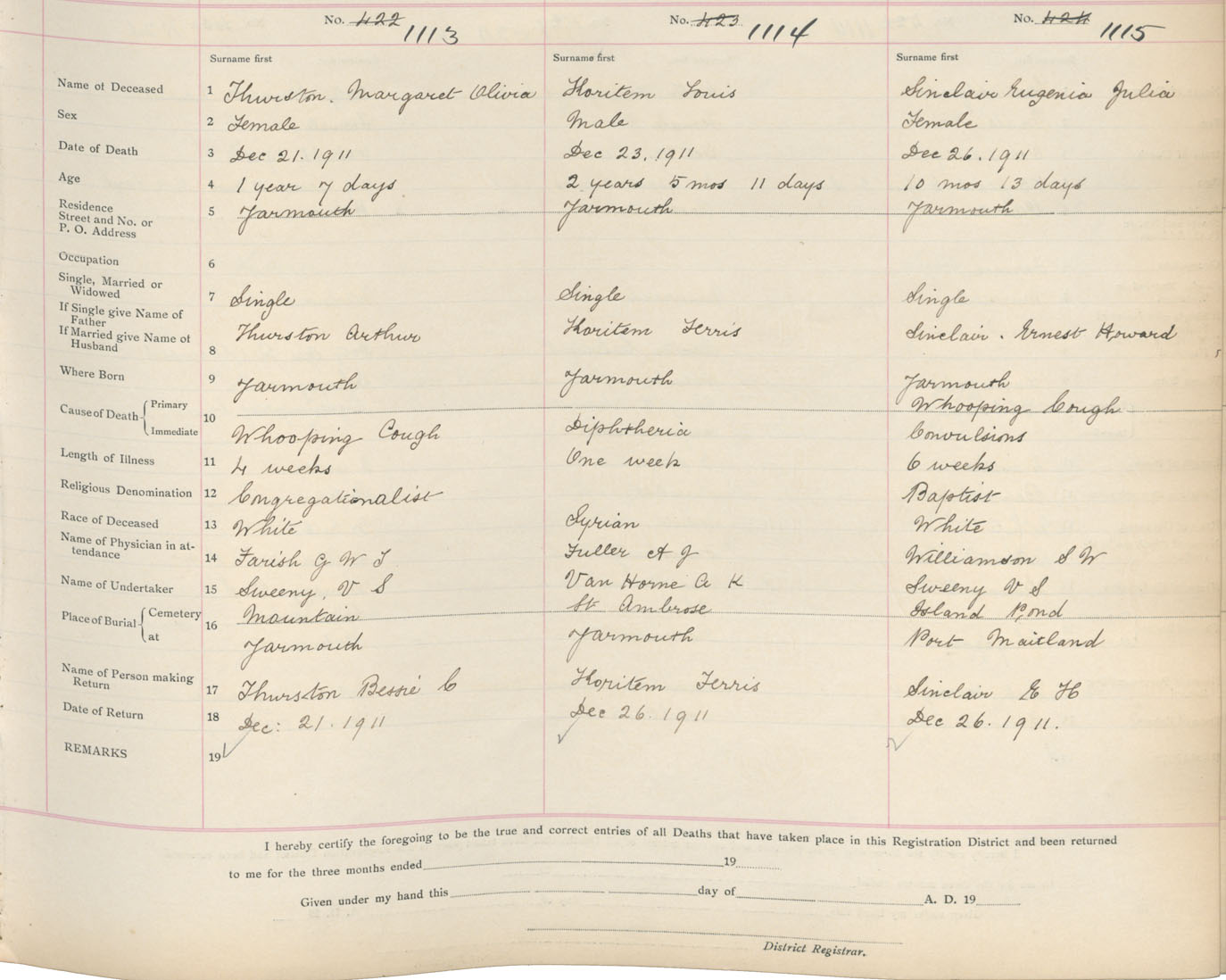 Death Registration: Year: 1911 book: 19 page: 190 number: 1115