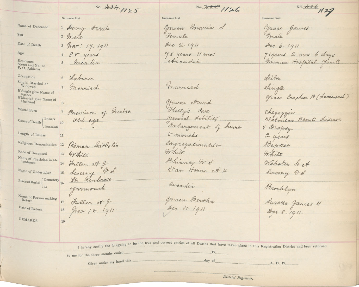 Death Registration: Year: 1911 book: 19 page: 192 number: 1127