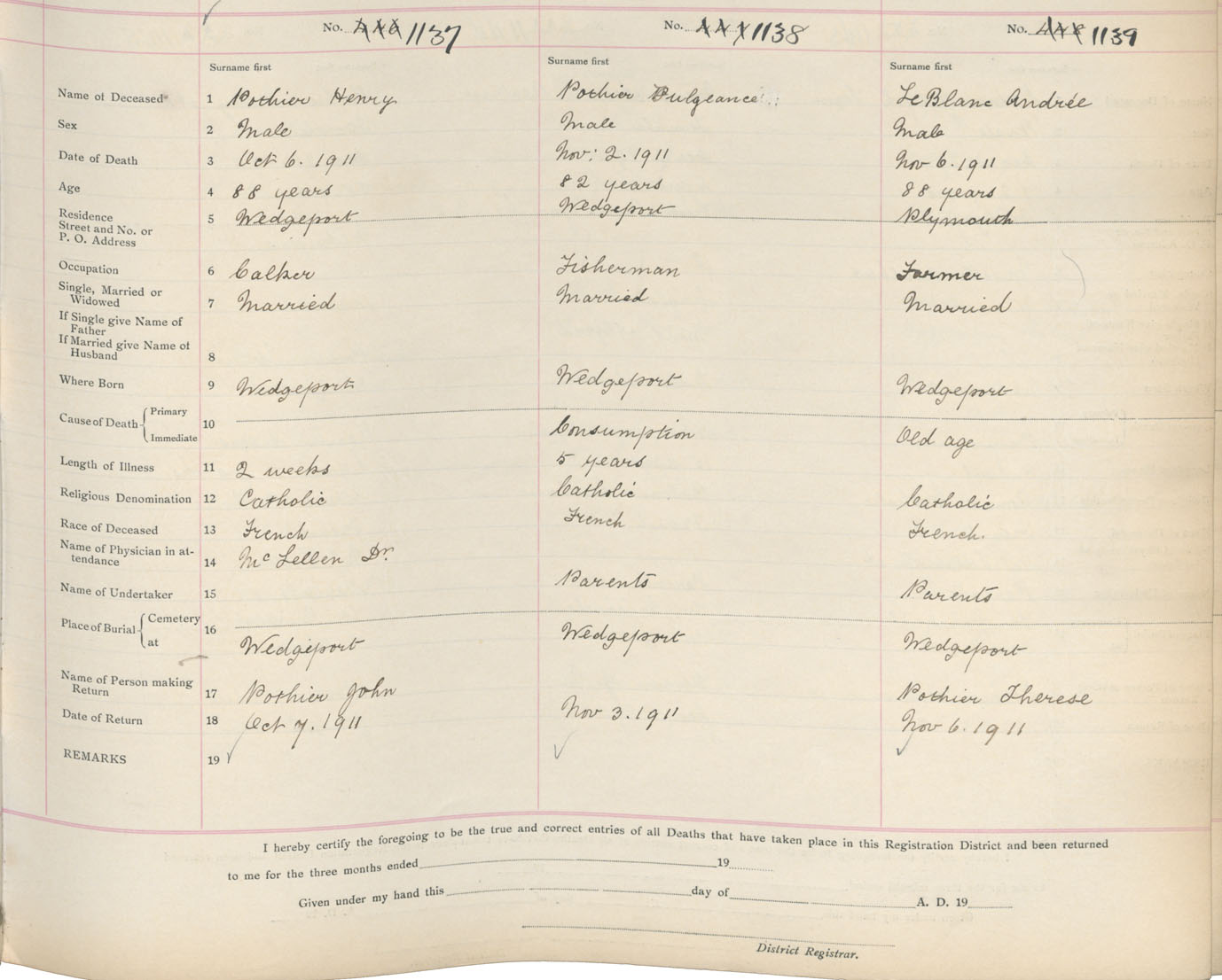 Death Registration: Year: 1911 book: 19 page: 194 number: 1139