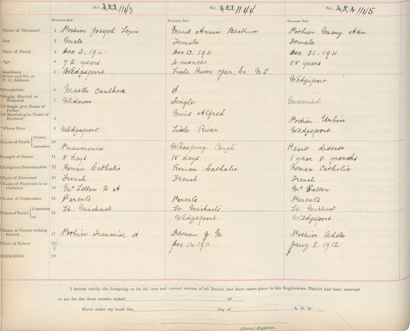 Death Registration: Year: 1911 book: 19 page: 195 number: 1145