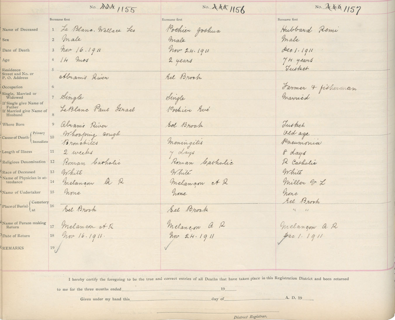 Death Registration: Year: 1911 book: 19 page: 197 number: 1157