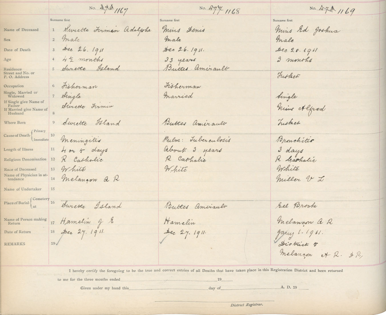 Death Registration: Year: 1911 book: 19 page: 199 number: 1169