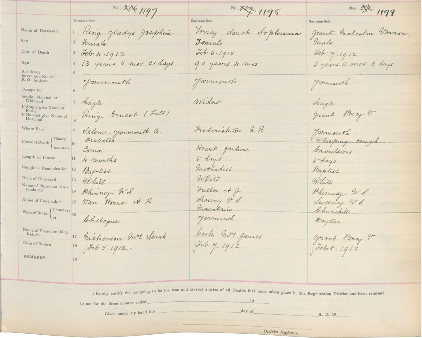 Death Registration: Year: 1912 book: 19 page: 204 number: 1199