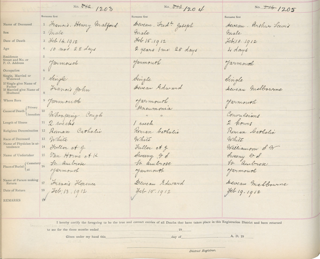 Death Registration: Year: 1912 book: 19 page: 205 number: 1205