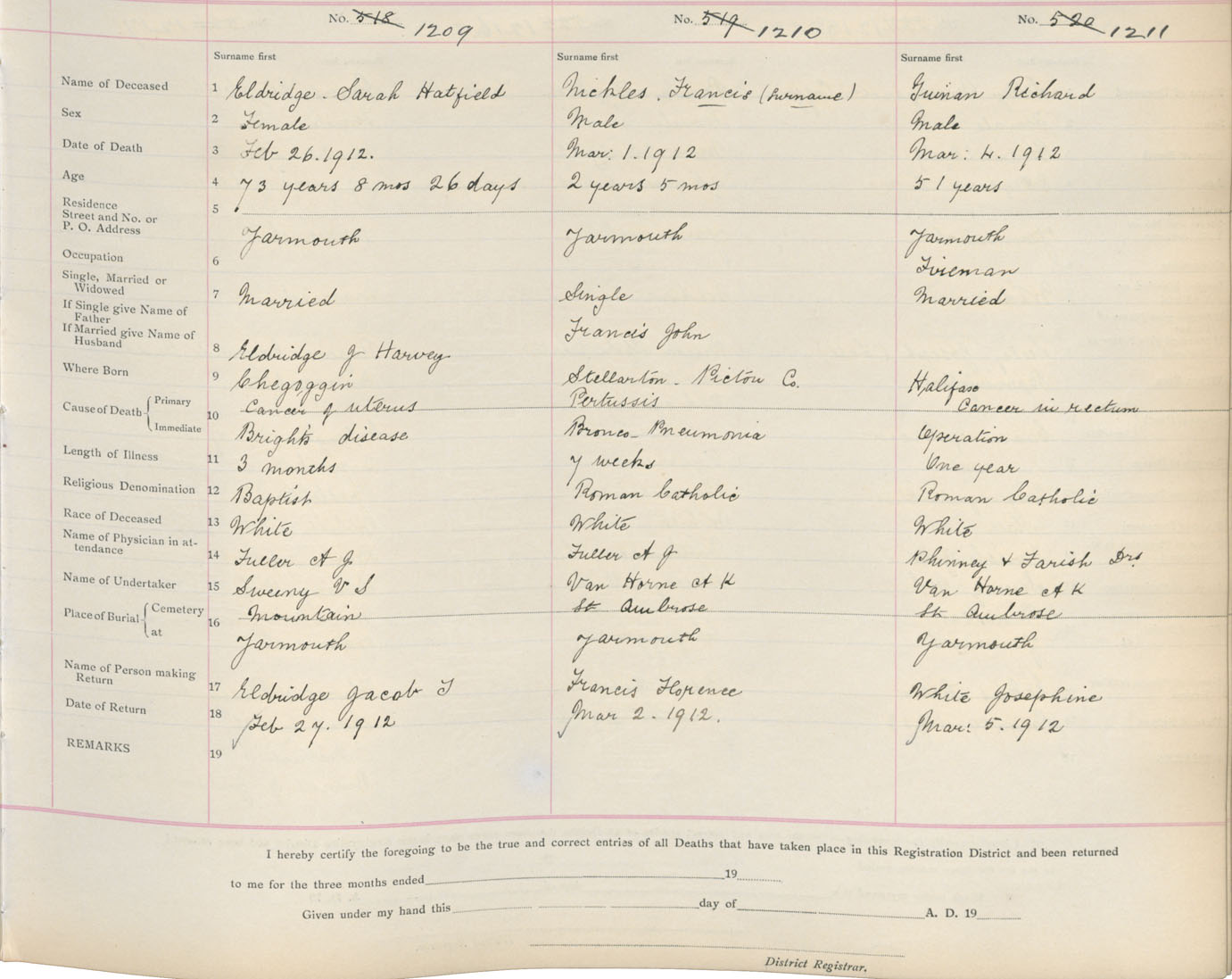 Death Registration: Year: 1912 book: 19 page: 206 number: 1211