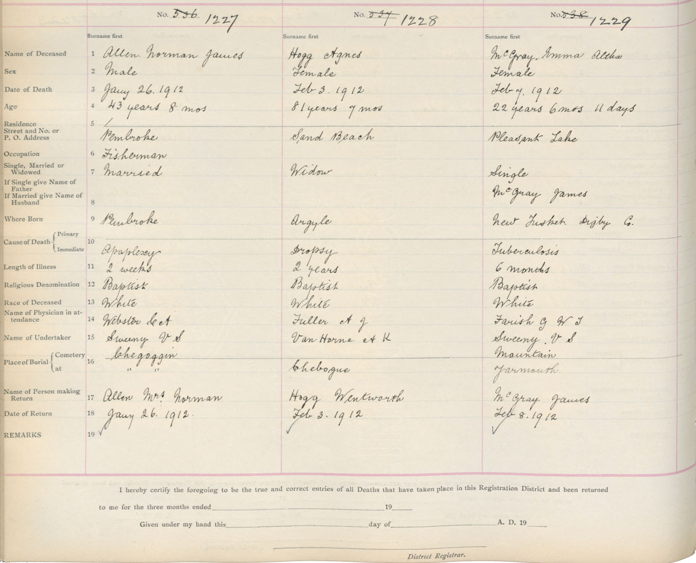 Death Registration: Year: 1912 book: 19 page: 209 number: 1229