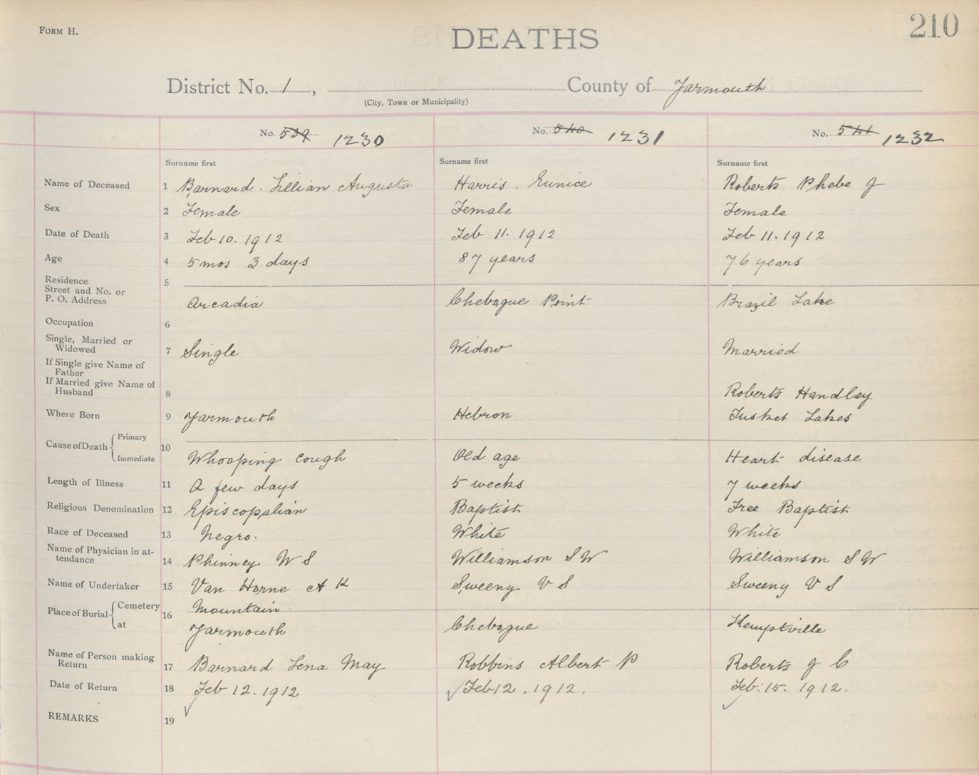 Death Registration: Year: 1912 book: 19 page: 210 number: 1232