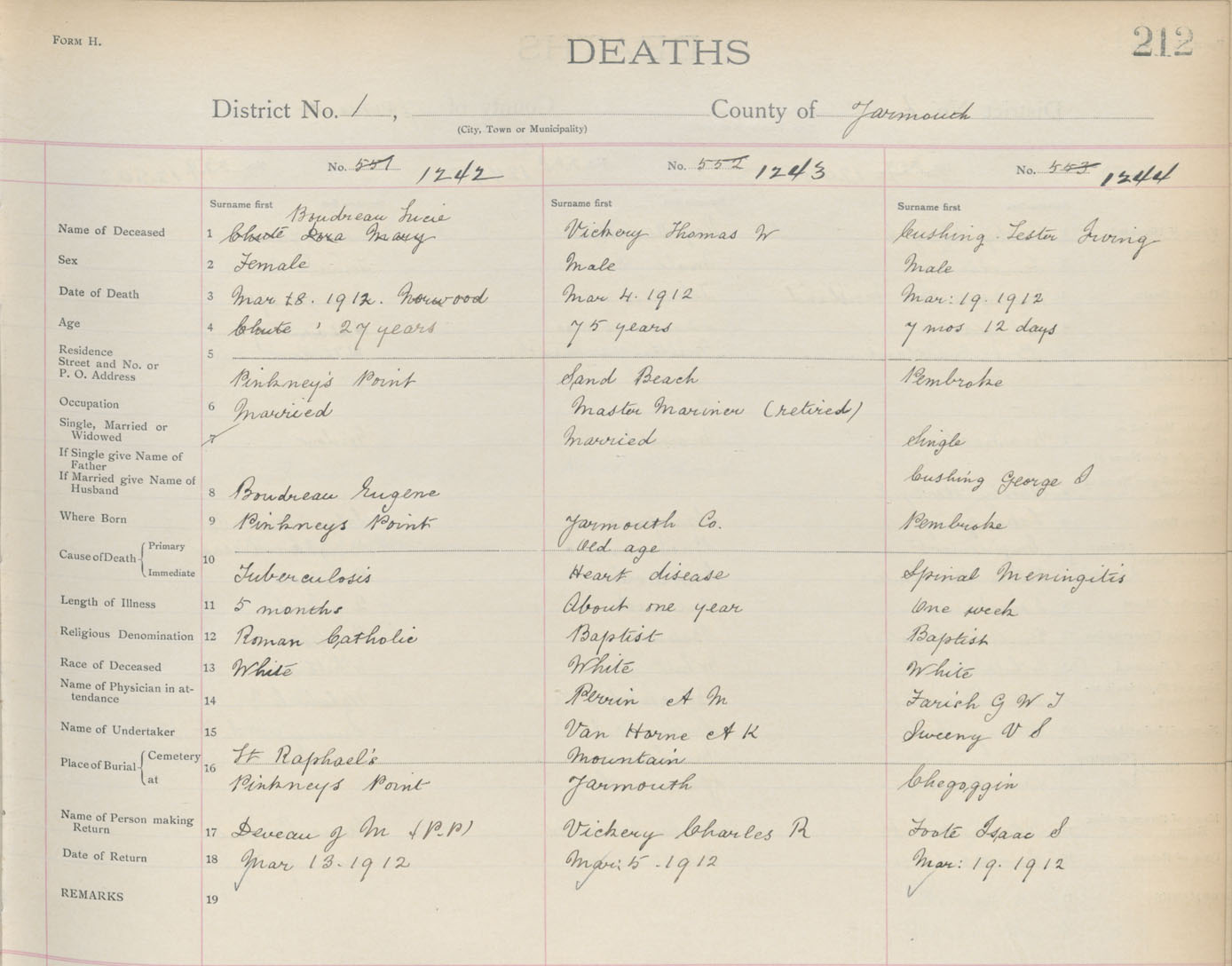 Death Registration: Year: 1912 book: 19 page: 212 number: 1244