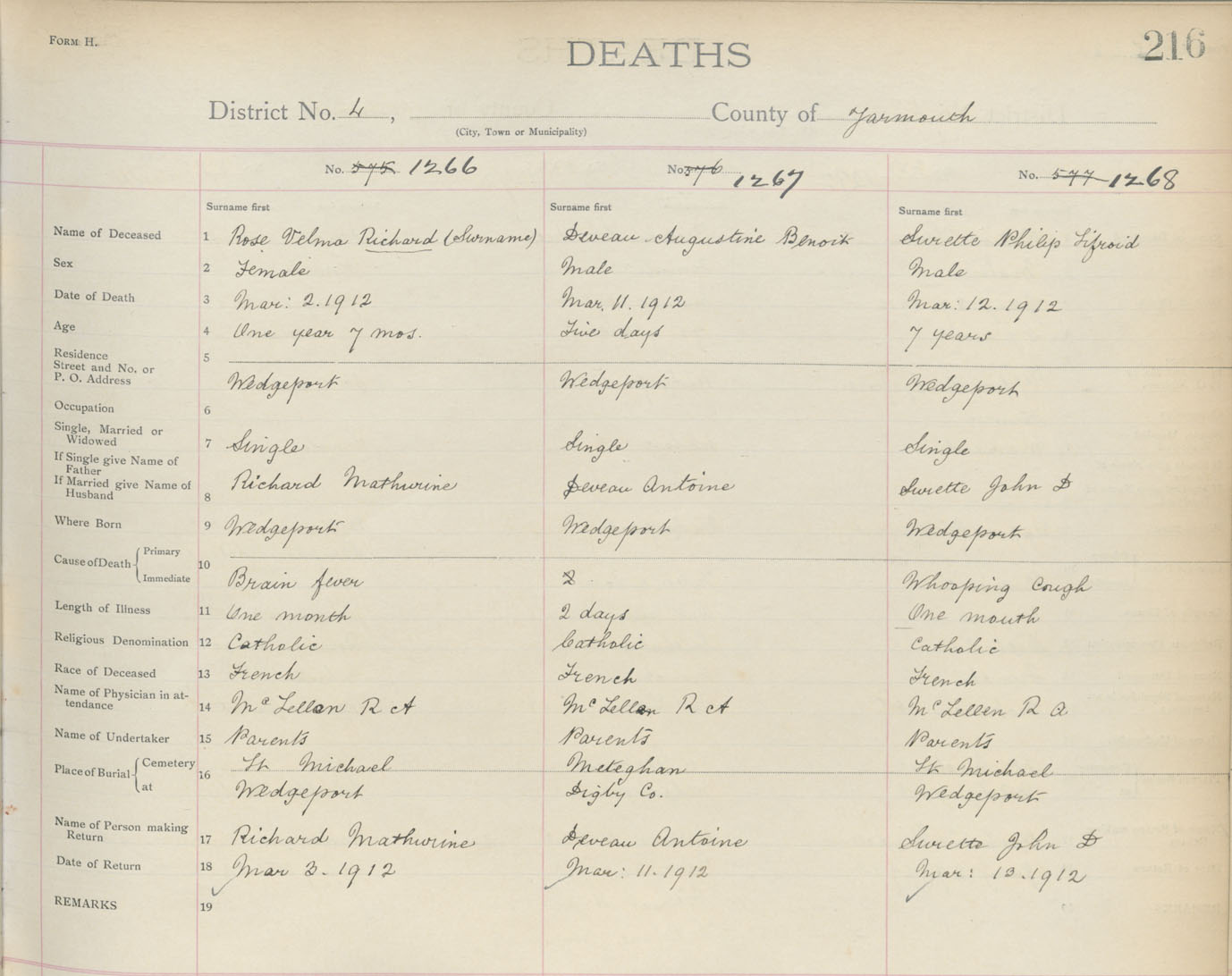 Death Registration: Year: 1912 book: 19 page: 216 number: 1266