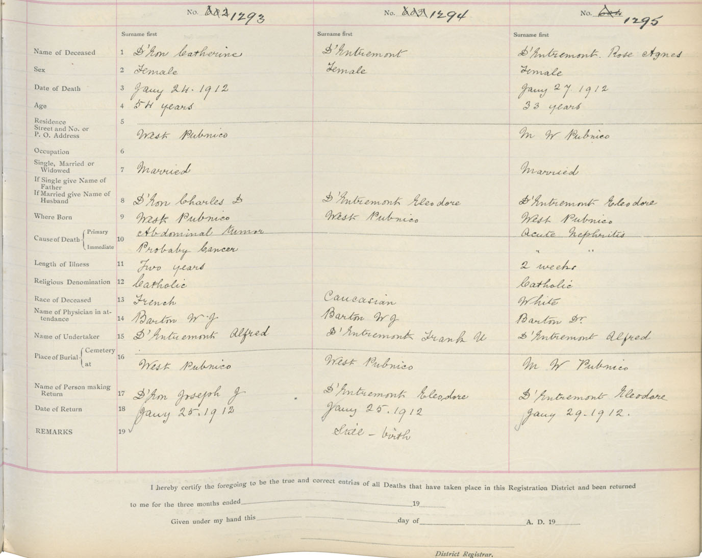 Death Registration: Year: 1912 book: 19 page: 220 number: 1293