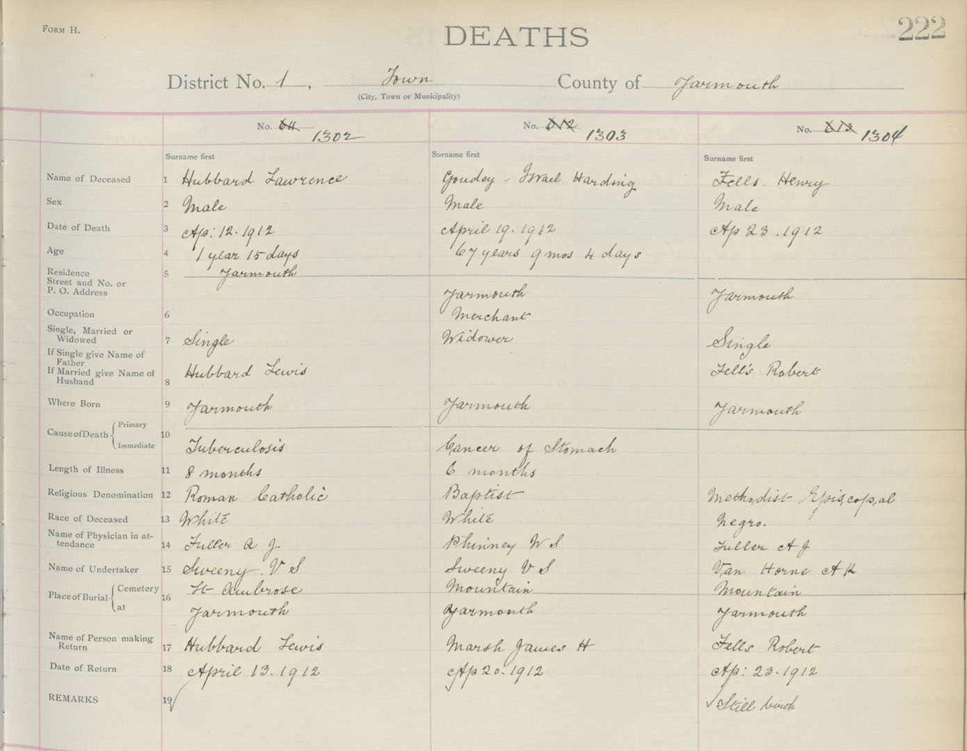 Death Registration: Year: 1912 book: 19 page: 222 number: 1302