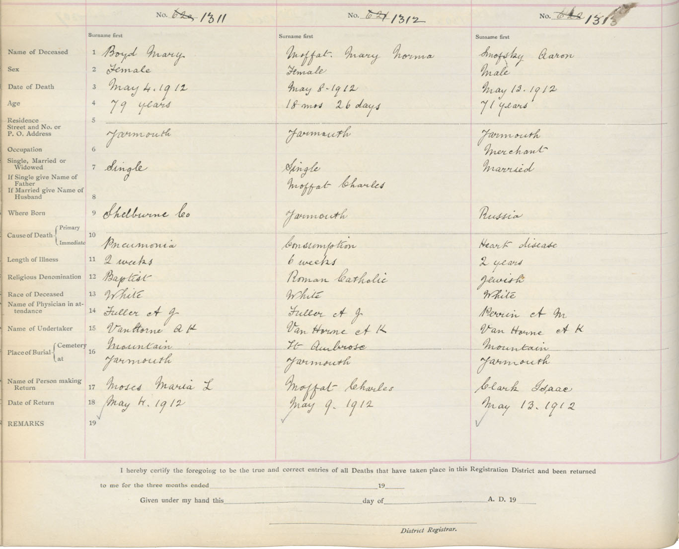 Death Registration: Year: 1912 book: 19 page: 223 number: 1311