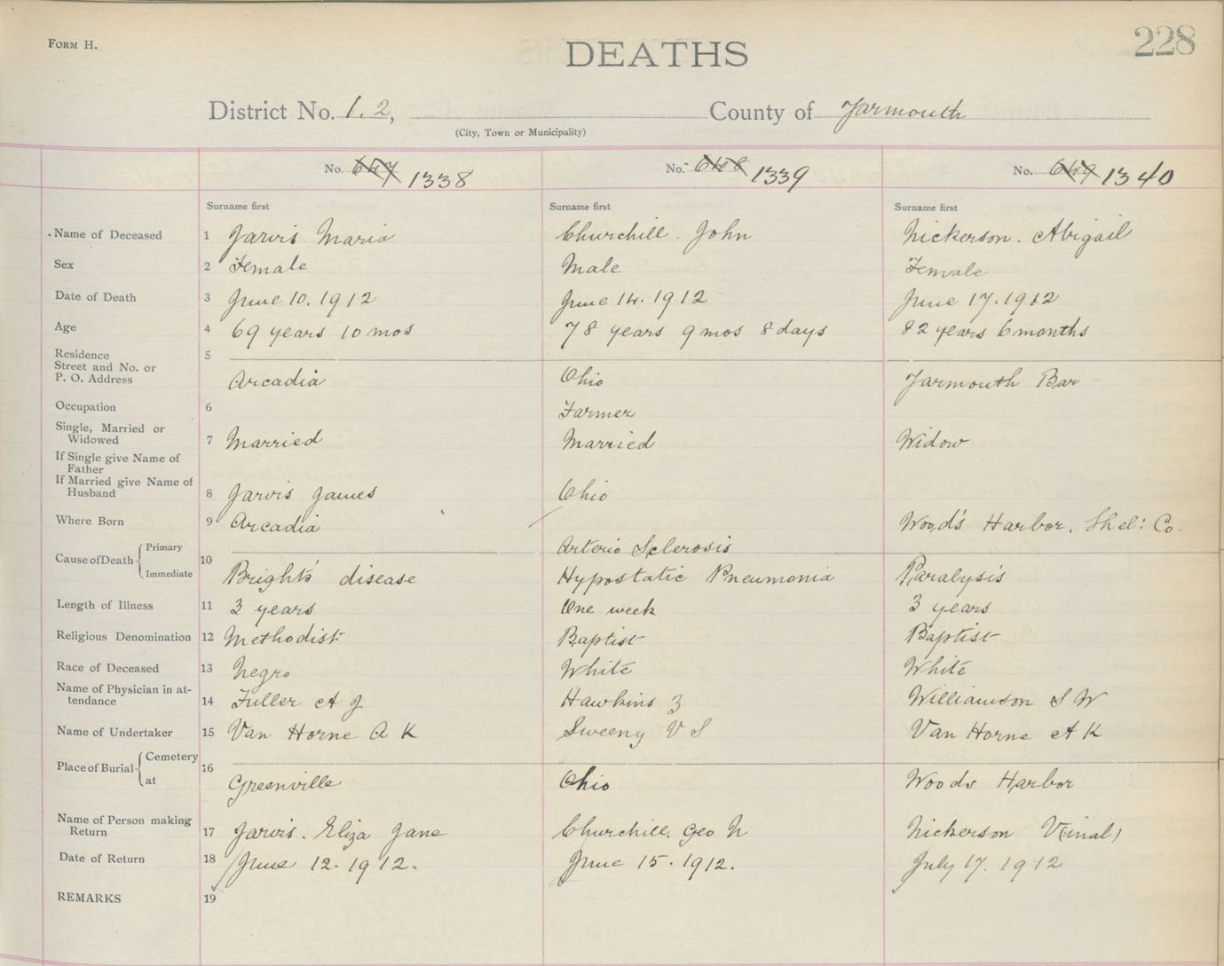 Death Registration: Year: 1912 book: 19 page: 228 number: 1338