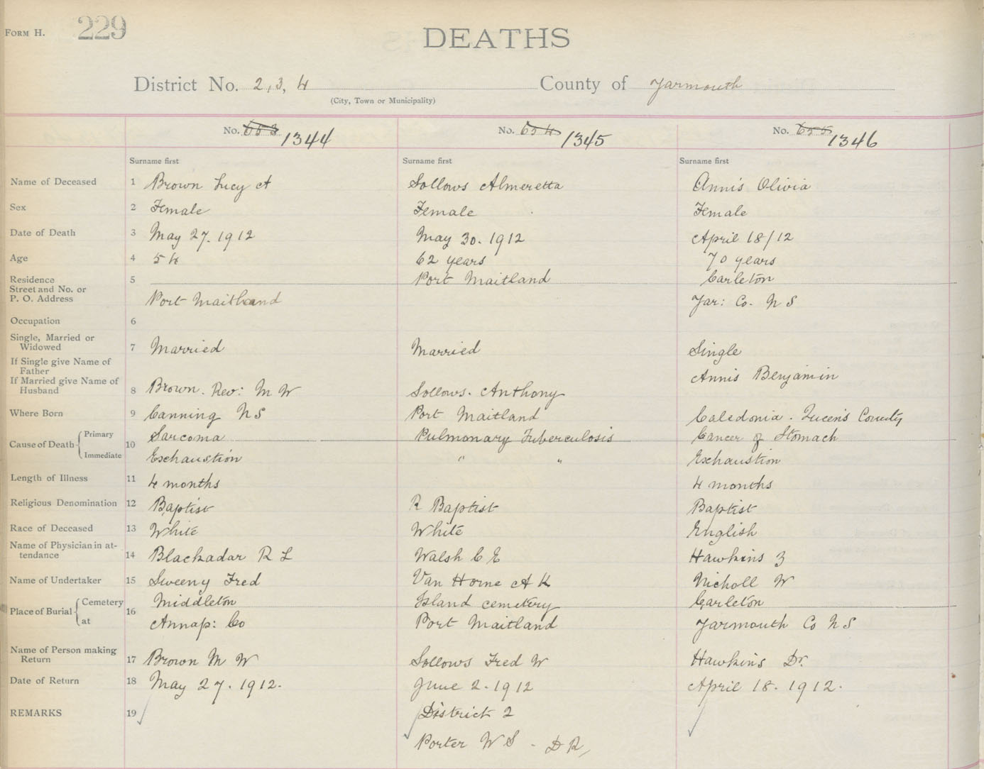 Death Registration: Year: 1912 book: 19 page: 229 number: 1344