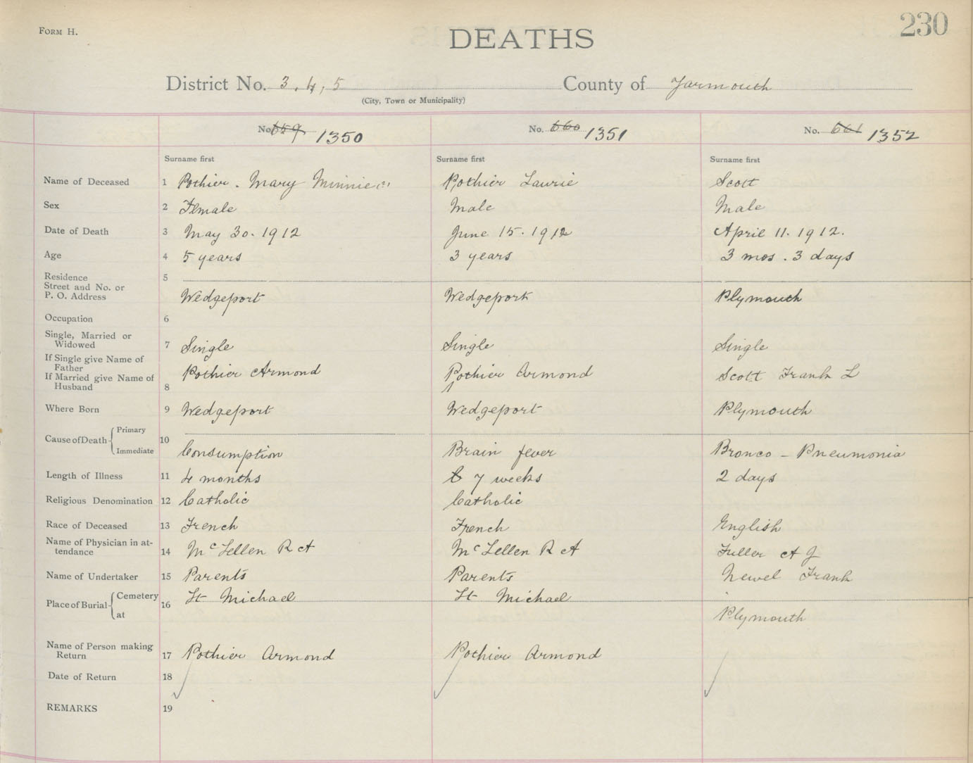 Death Registration: Year: 1912 book: 19 page: 230 number: 1350