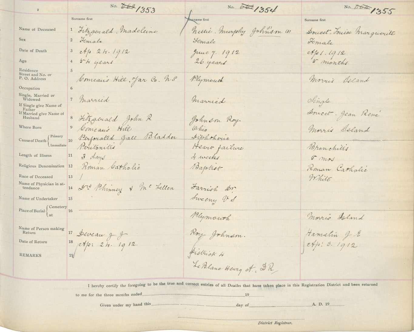 Death Registration: Year: 1912 book: 19 page: 230 number: 1353
