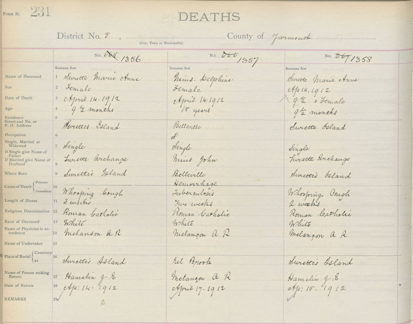Death Registration: Year: 1912 book: 19 page: 231 number: 1356