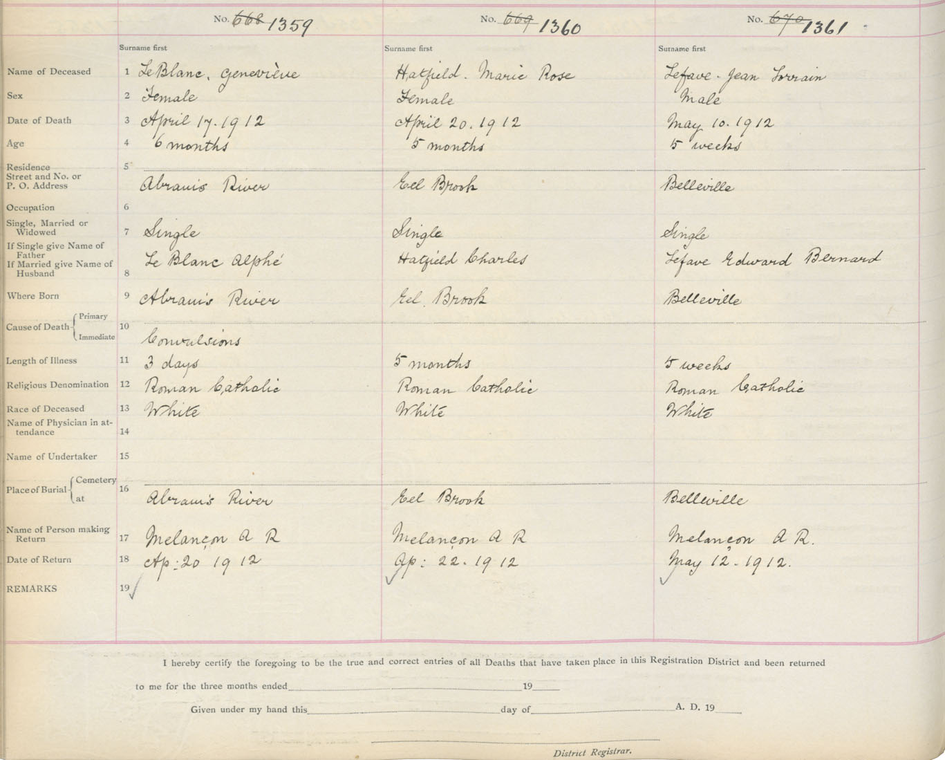 Death Registration: Year: 1912 book: 19 page: 231 number: 1359