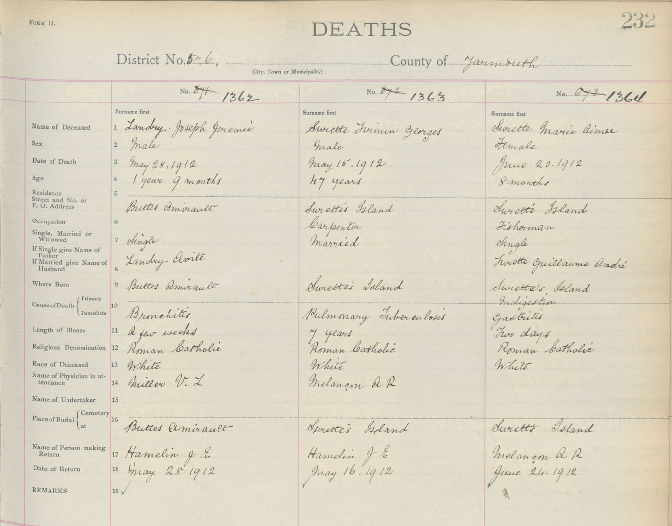 Death Registration: Year: 1912 book: 19 page: 232 number: 1362