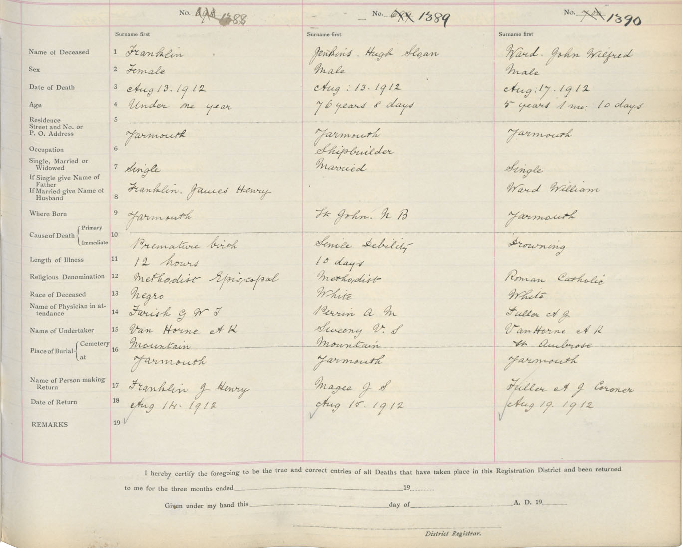 Female Death Registration: Year: 1912 book: 19 page: 236 number: 1388
