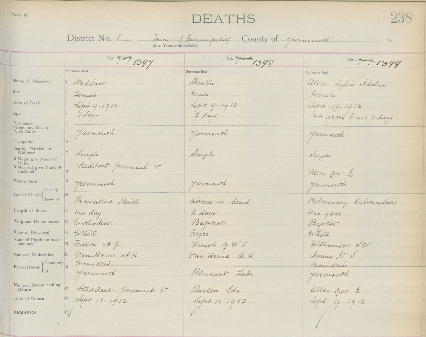 Death Registration: Year: 1912 book: 19 page: 238 number: 1397