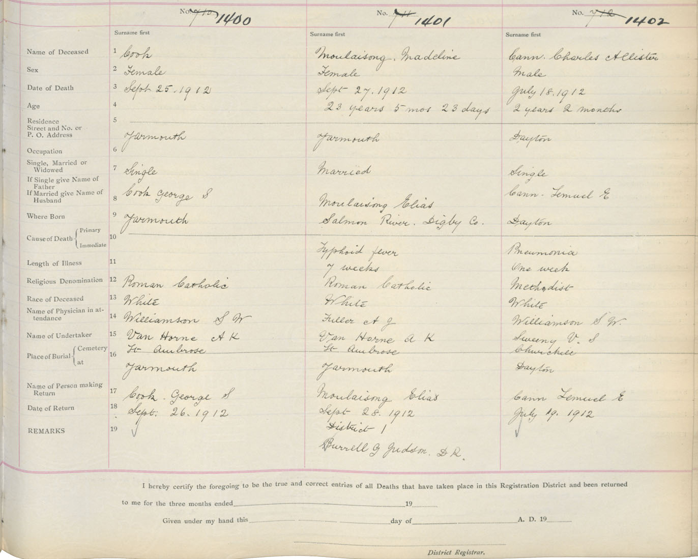 Death Registration: Year: 1912 book: 19 page: 238 number: 1400
