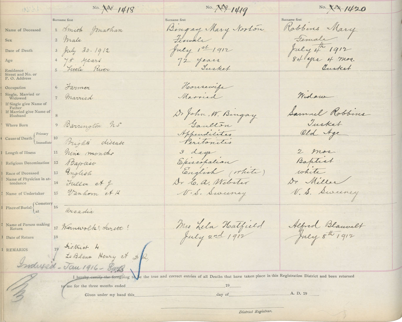 Death Registration: Year: 1912 book: 19 page: 241 number: 1418