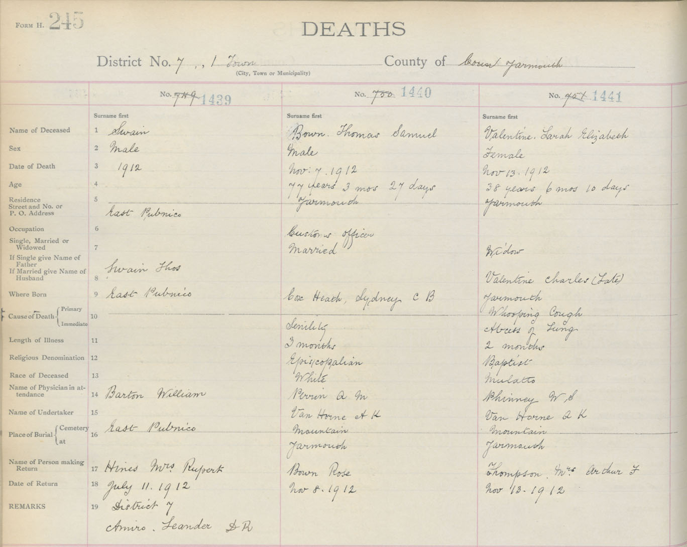 Male Death Registration: Year: 1912 book: 19 page: 245 number: 1439