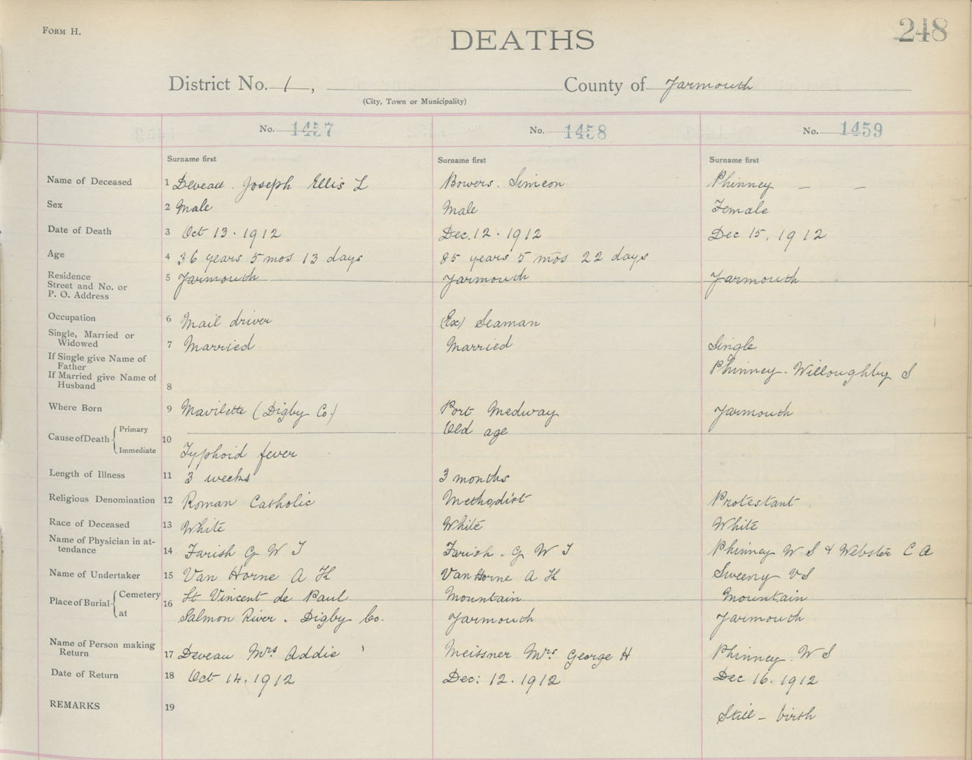 Death Registration: Year: 1912 book: 19 page: 248 number: 1457