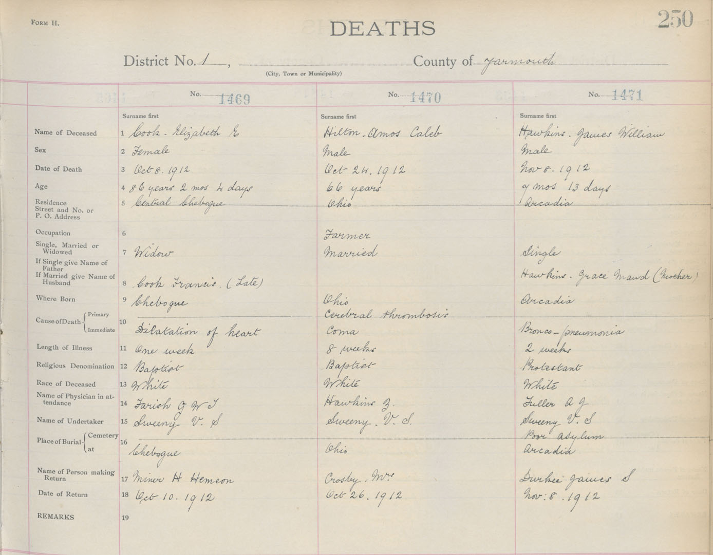 Death Registration: Year: 1912 book: 19 page: 250 number: 1469