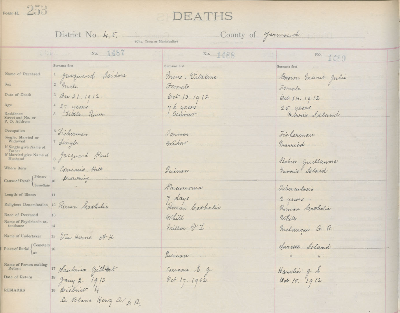 Death Registration: Year: 1912 book: 19 page: 253 number: 1487