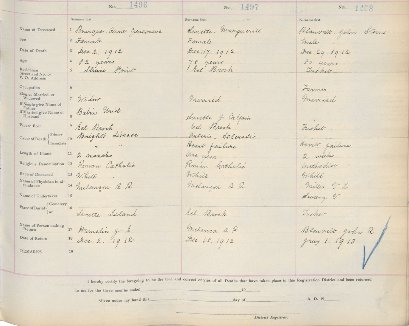 Death Registration: Year: 1912 book: 19 page: 254 number: 1496