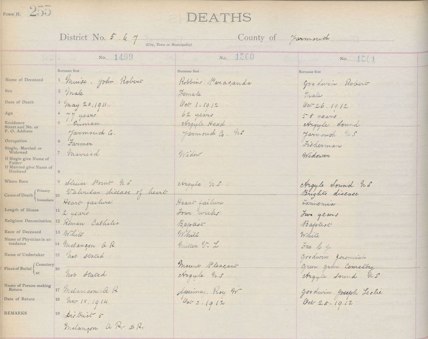 Death Registration: Year: 1912 book: 19 page: 255 number: 1499