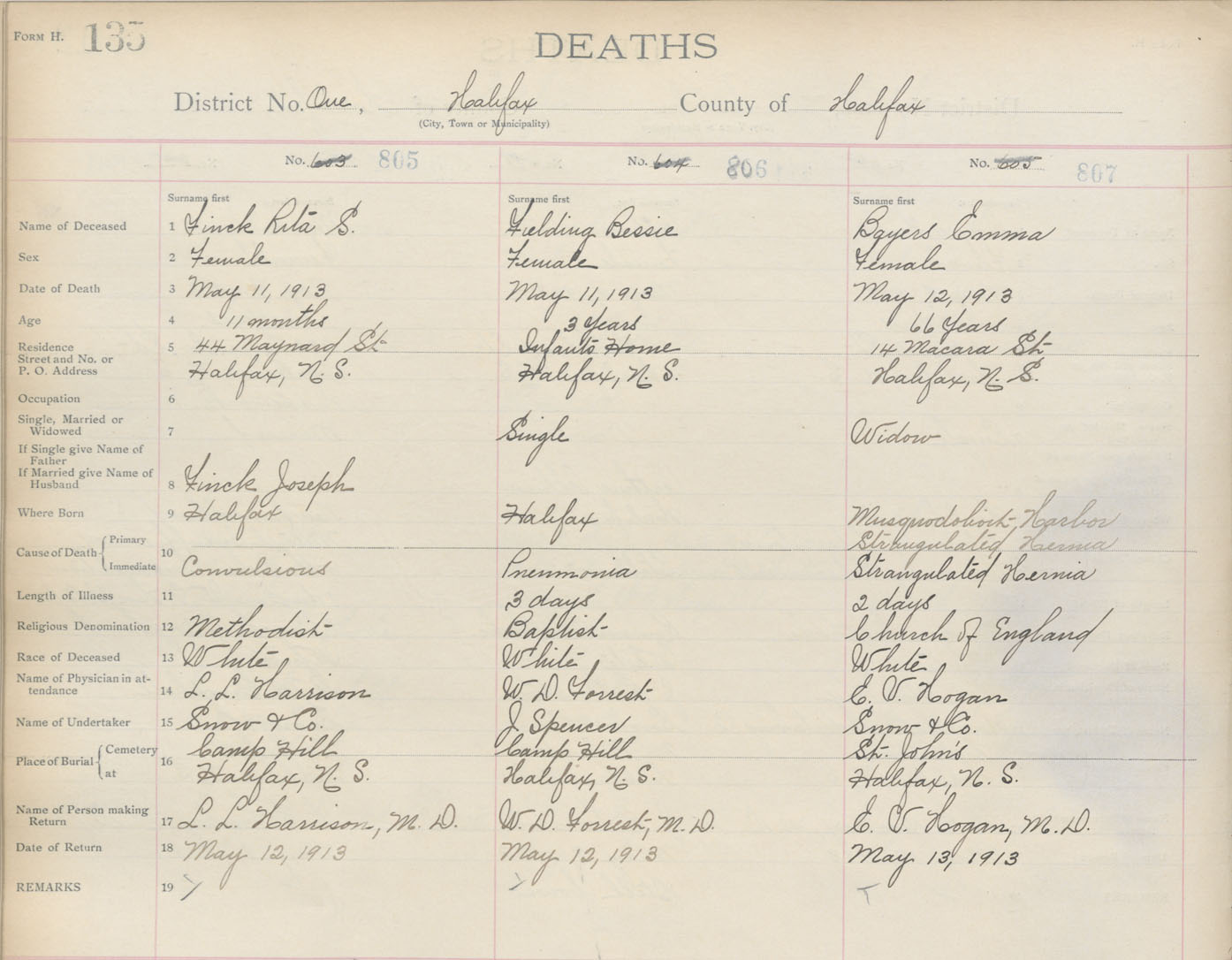 Death Registration: Year: 1913 book: 20 page: 135 number: 807