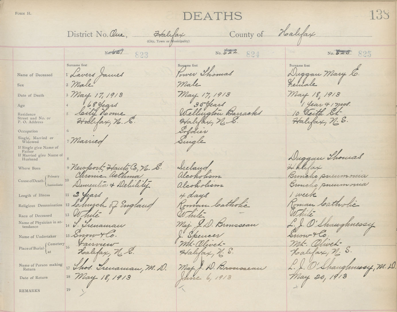 Death Registration: Year: 1913 book: 20 page: 138 number: 825