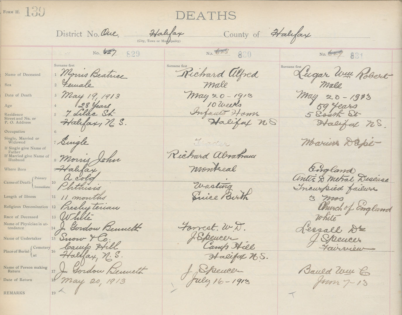 Death Registration: Year: 1913 book: 20 page: 139 number: 831
