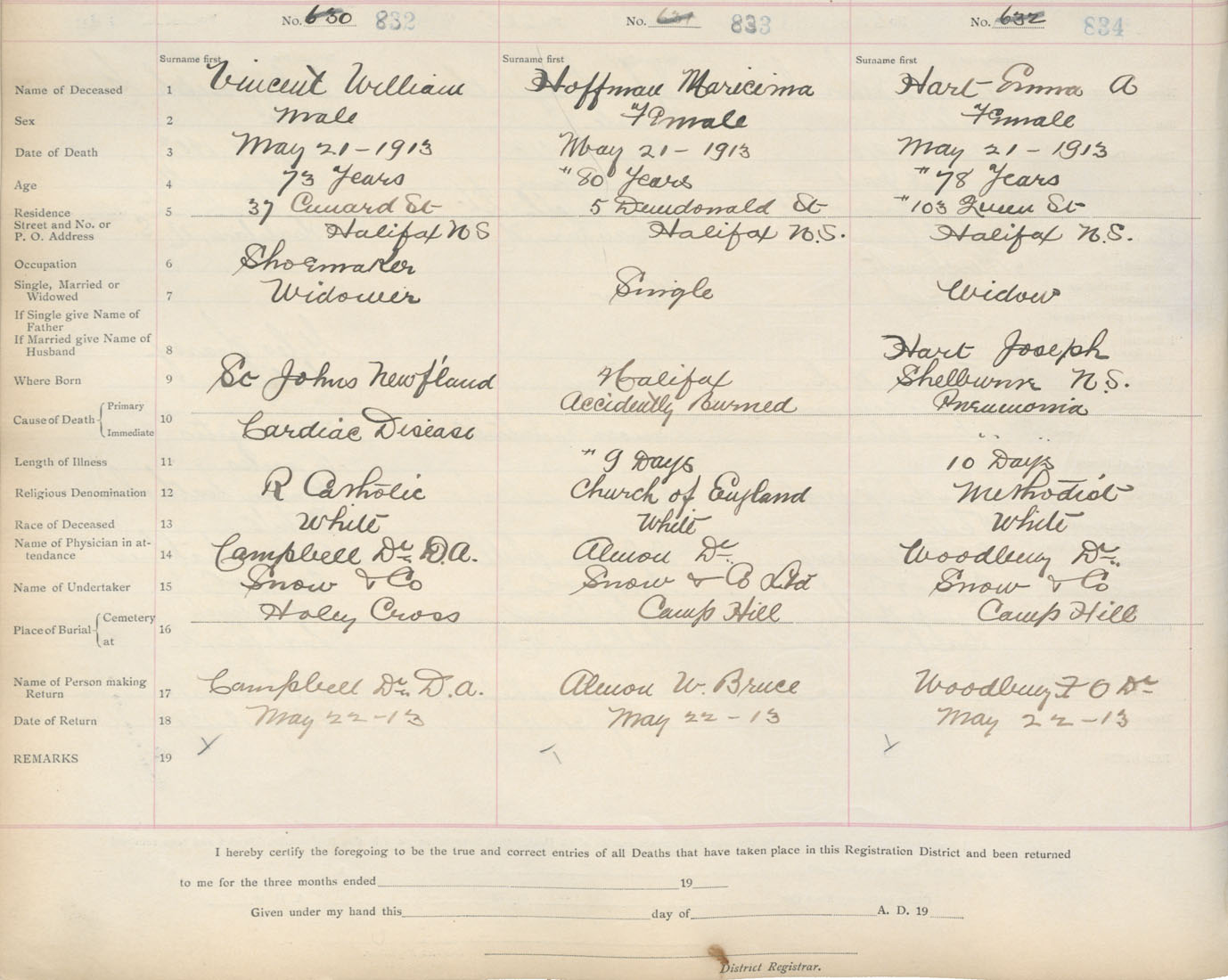 Death Registration: Year: 1913 book: 20 page: 139 number: 834