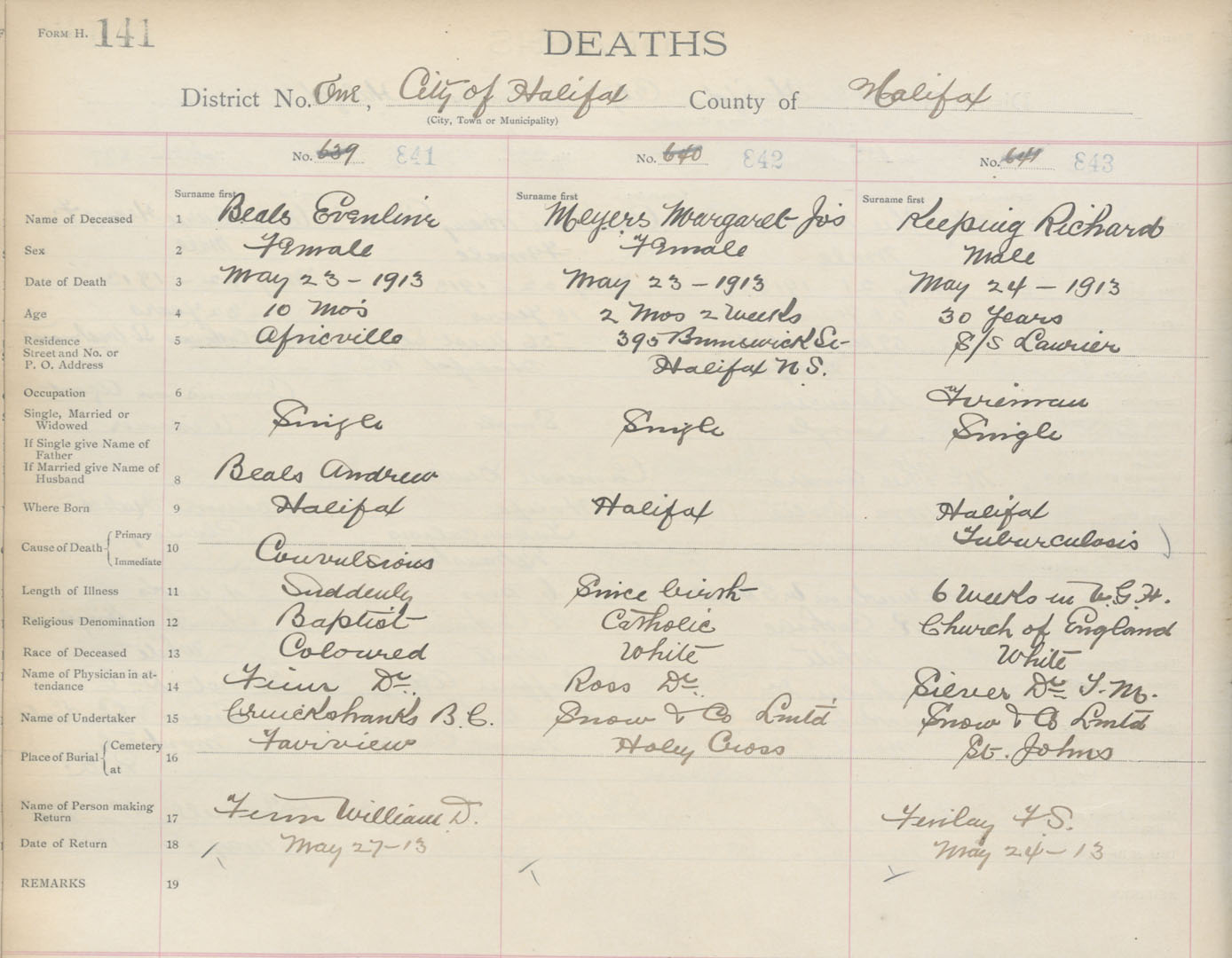 Death Registration: Year: 1913 book: 20 page: 141 number: 843
