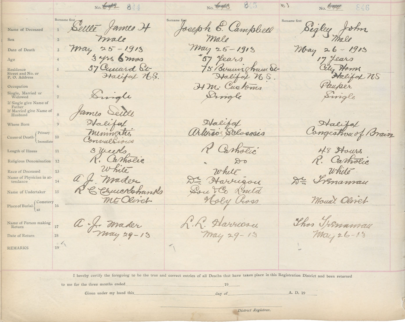 Death Registration: Year: 1913 book: 20 page: 141 number: 846